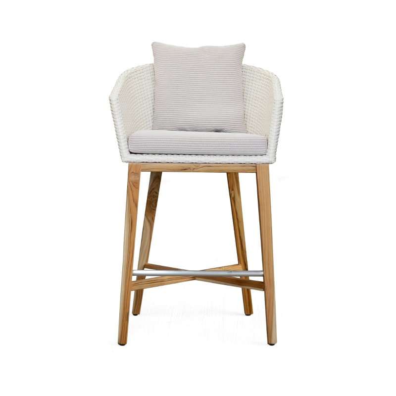 Tejido en polipropileno de alta resistencia para exterior, estructura asiento de aluminio con base de madera de rosa morada.