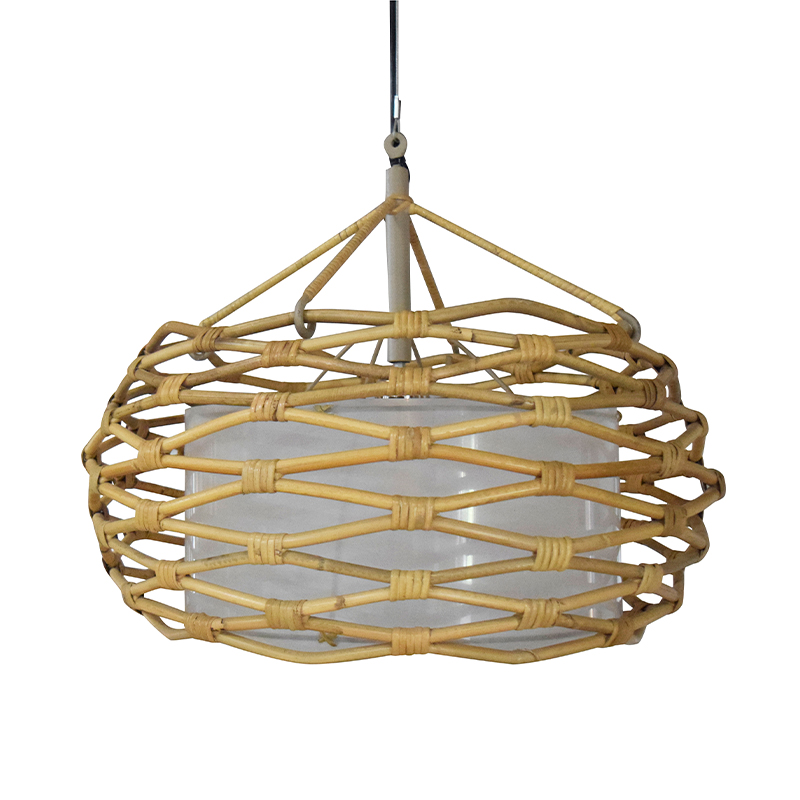 Esta lámpara colgante artesanal está elaborada con vara de ratán natural entrelazada a mano por artesanos mexicanos, creando un diseño orgánico y sofisticado que aporta calidez y estilo a cualquier espacio interior.