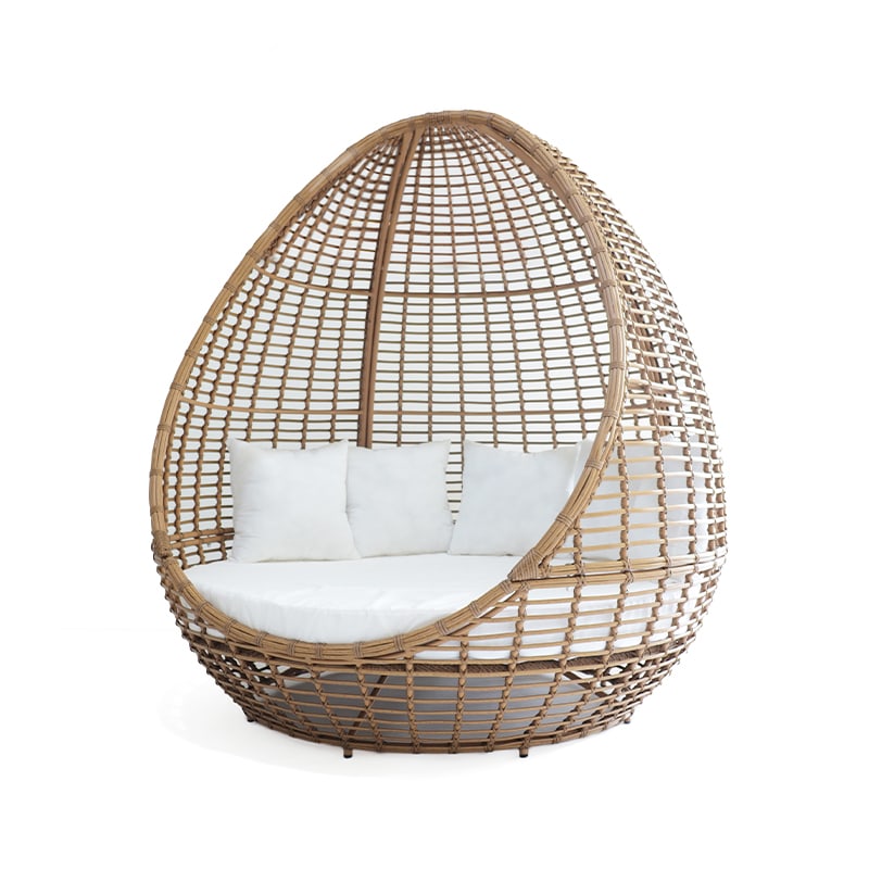 Estructura de aluminio tubular reforzado. Tejido a mano con fibra sintética de polipropileno alemán. Incluye cojines de asiento y respaldo. Diseño exclusivo.