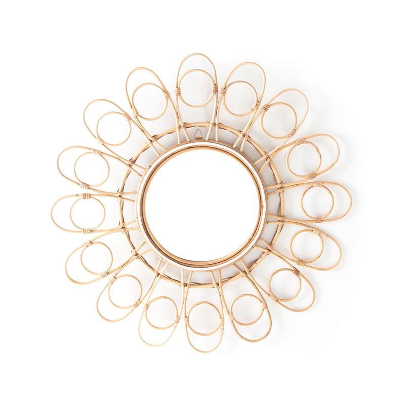 Este espejo de forma orgánica se convierte en una pieza decorativa única gracias a su diseño fluido y su marco artesanal de rattán natural. Cada curva aporta movimiento y calidez visual, ideal para ambientes bohemios, costeros o contemporáneos que buscan toques naturales y ligeros.