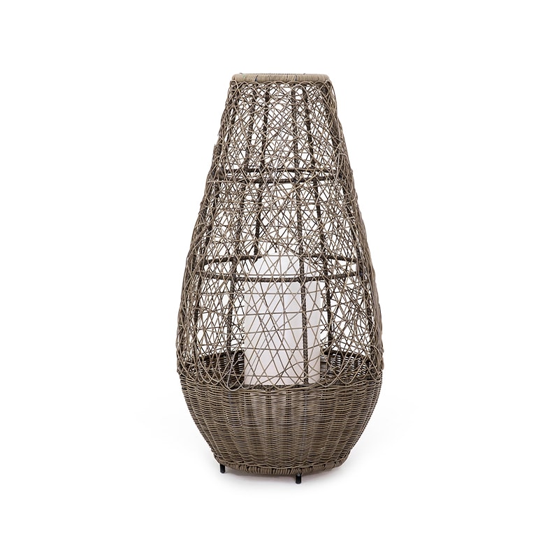 Lámpara de pie con tejido en sintético de rattan, estructura de metal, estilo boho-chic, ideal para el exterior por su protector interior