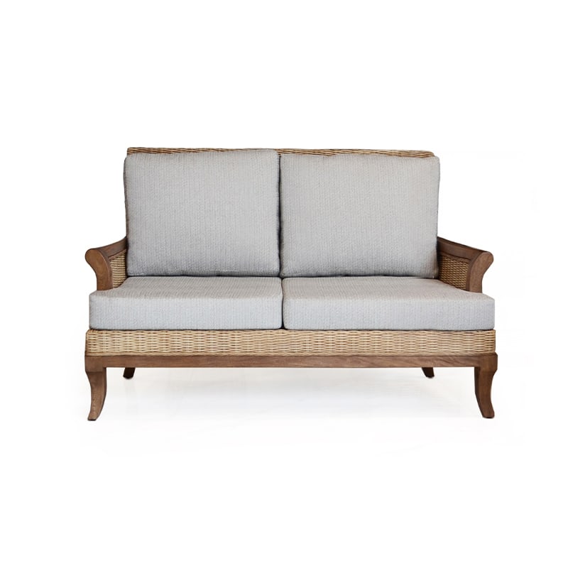 El loveseat de esta colección ofrece dos plazas con gran soporte gracias a su respaldo alto y cojines acolchonados. La combinación de fibra tejida y madera tallada le da un aspecto clásico ideal para ambientes elegantes o residencias estilo colonial o tropical. Su diseño robusto asegura comodidad y durabilidad por muchos años.