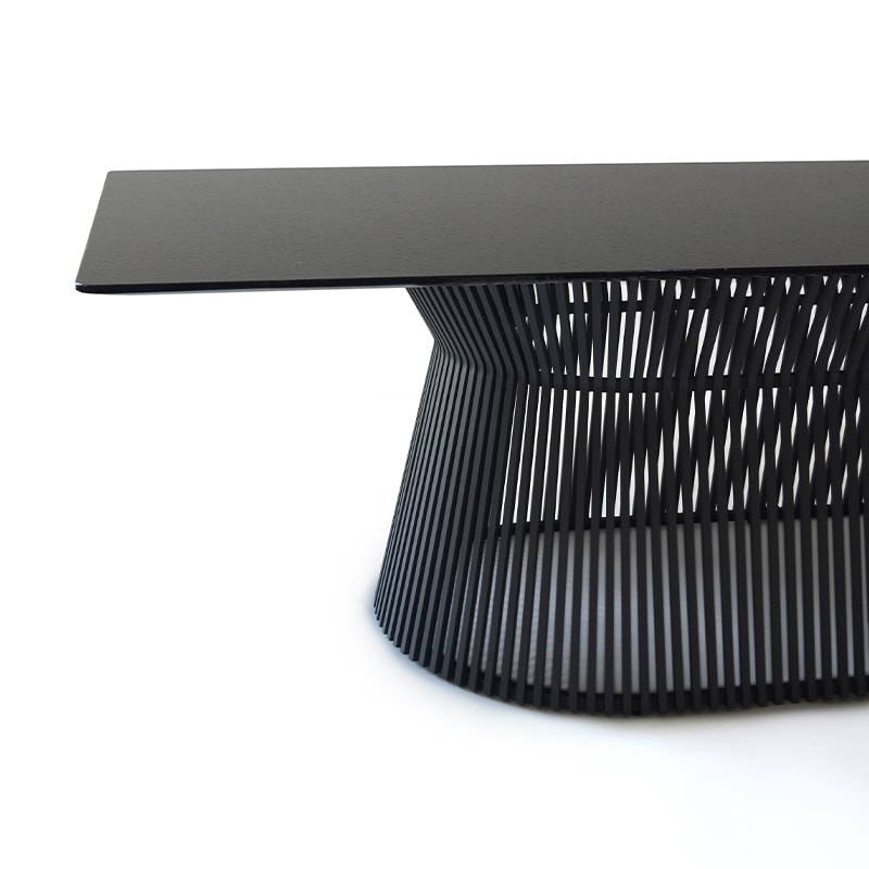Perfecta para comedor, salas de juntas o espacios de diseño vanguardista, esta mesa es una pieza central que no pasa desapercibida.