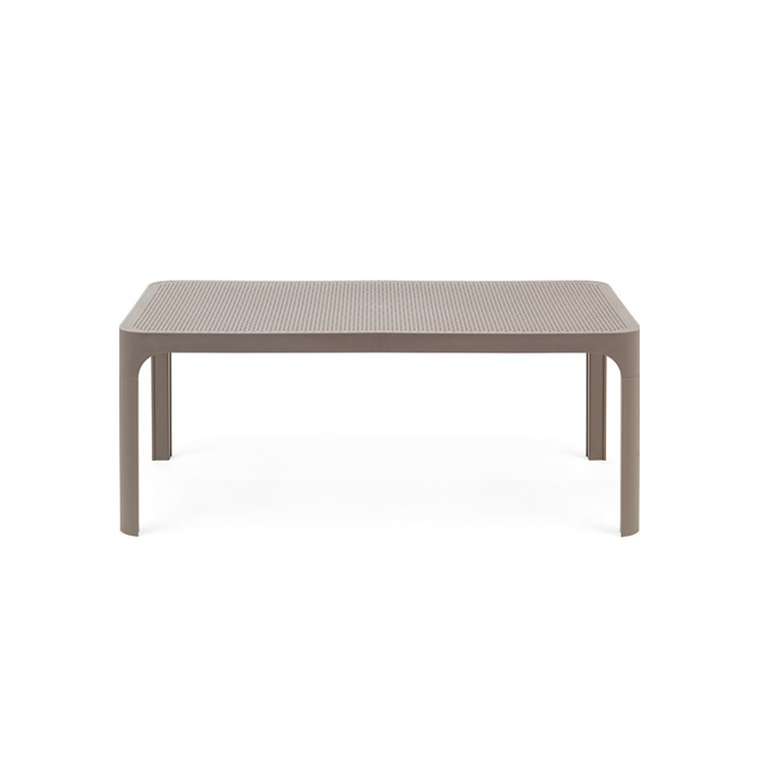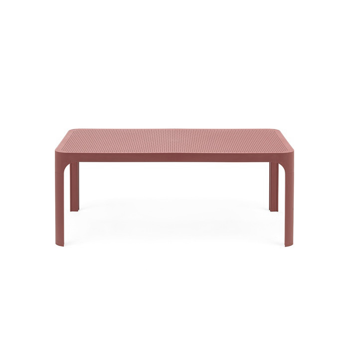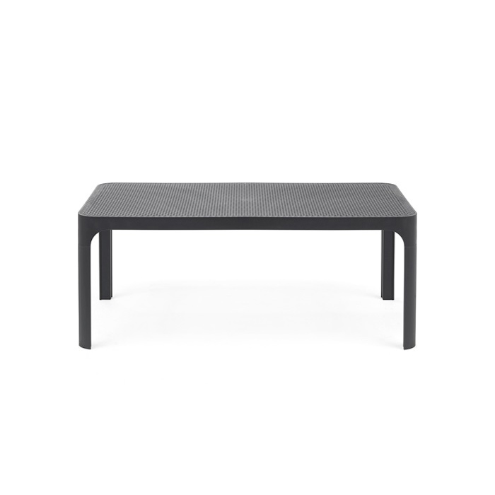 Mesa baja. Material: polipropileno fiberglass tratado anti-UV y teñido en masa. Efecto mate. Con tapones antideslizantes. Resina reciclable.