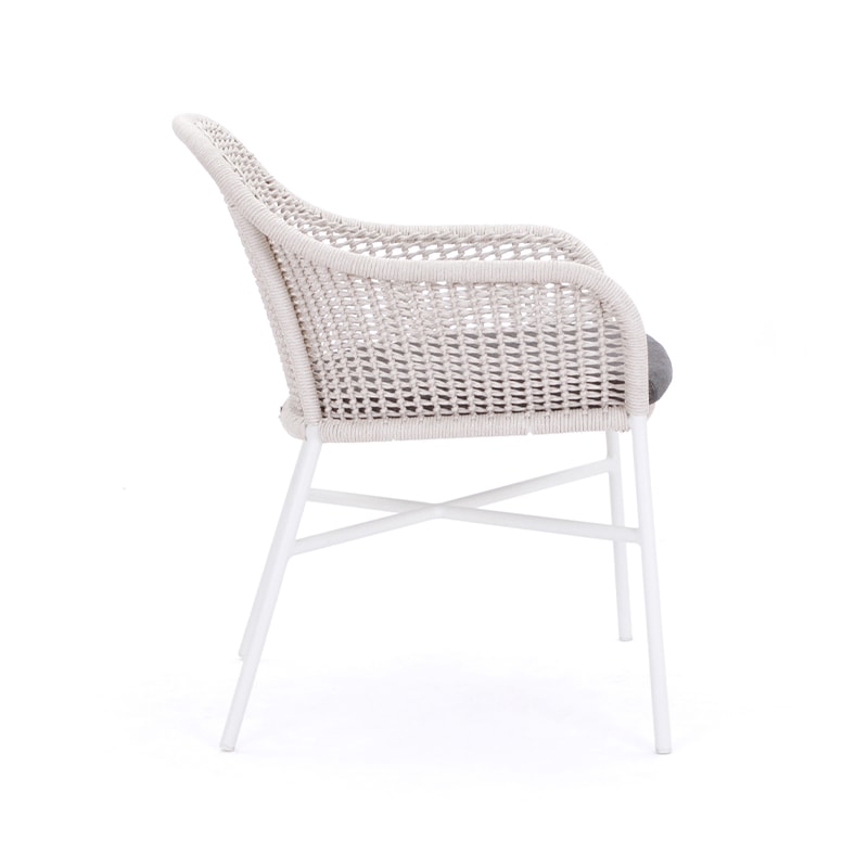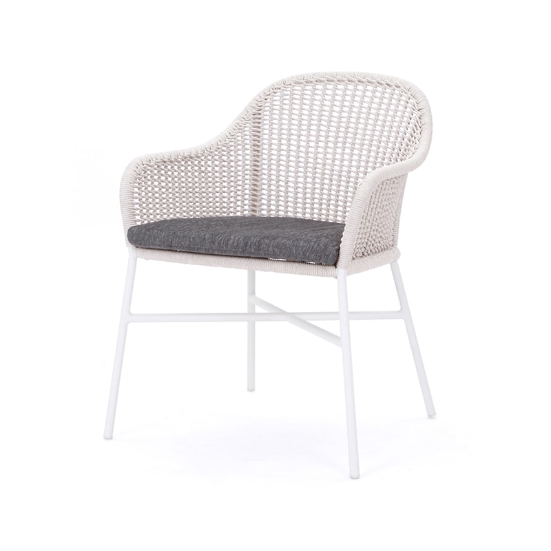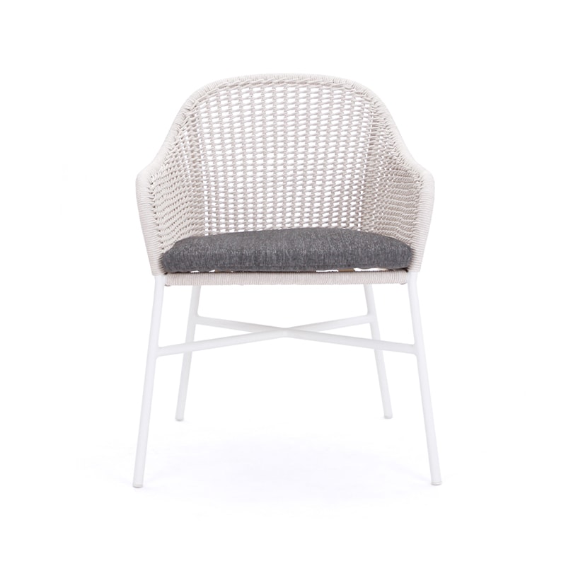 La colección Hawaiian se caracteriza por su gran cantidad de tejido a mano, la cual te hace sentirte abrazado por una obra maestra artesanal, ademas, su tejido es apto para el uso exterior, resistente a agentes atmosféricos. El diseño del tejido, combinado con la gran textura de las telas, hacen de esta silla un perfecto elemento para iluminar cualquier terraza.
