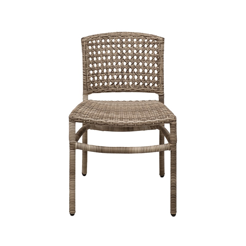 Silla con brazos. Estructura de aluminio tubular reforzado. Respaldo cóncavo aportando confortabilidad. El asiento tiene un corto faldón tejido. Toda su estructura es tejida con fibra sintética de polipropileno Alemán, resistente para exterior.