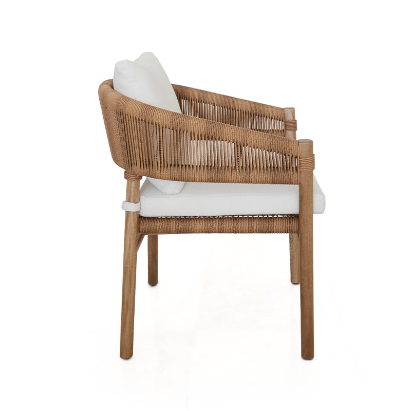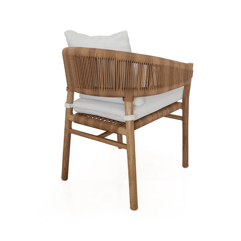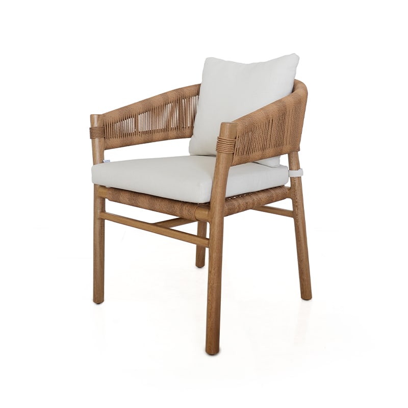 La silla para comedor Soho combina elegancia y confort con su estructura de madera, tejido artesanal y cojinería suave en diversos tonos, ideal para ambientes modernos y acogedores.