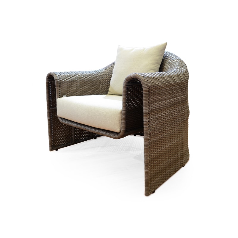 Este sillón destaca por su silueta envolvente y orgánica, tejida completamente a mano con fibra sintética de alta resistencia para uso exterior. Su diseño curvo y profundo ofrece una experiencia de descanso cómoda y estética, ideal para terrazas, patios o áreas lounge.