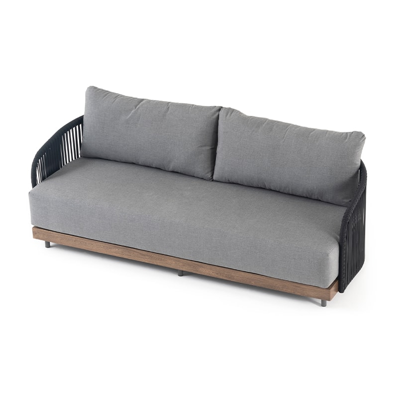 Este conjunto de sala de exterior destaca por su estética moderna, materiales resistentes y máxima comodidad. Todos fabricados con estructura de madera tratada para intemperie y detalles en cuerda náutica, tejida a mano con precisión y elegancia.