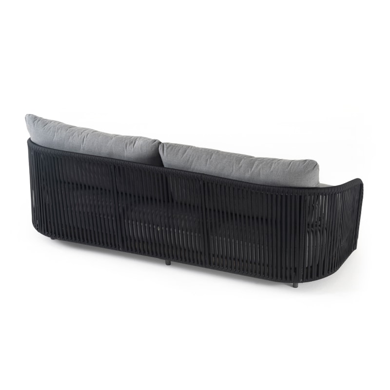 Los cojines, están elaborados con espuma de alta densidad y telas aptas para exteriores, resistentes a la humedad, los rayos UV y el desgaste por uso constante. Las formas curvas de los respaldos y brazos ofrecen una sensación envolvente, ideal para crear un ambiente sofisticado en terrazas, jardines o zonas lounge.